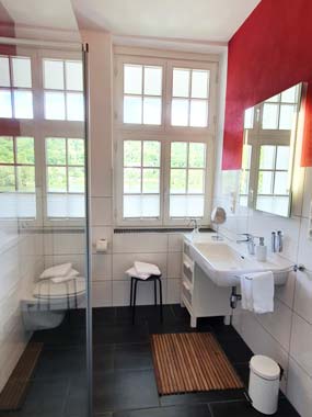 Ebenerdige Dusche mit Glasabtrennung, WC,
