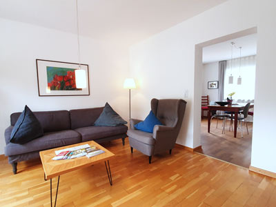 Sessel, und die zweite Couch im Nebenraum ist zum